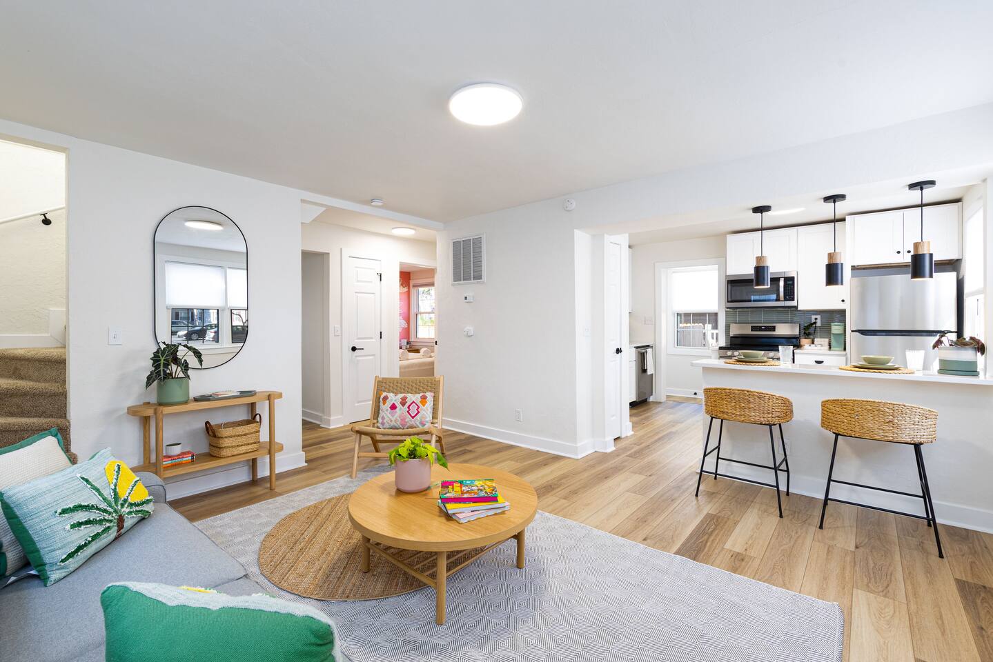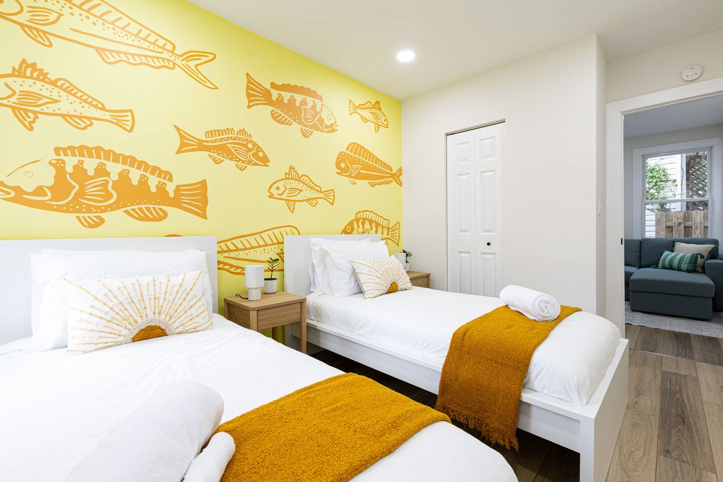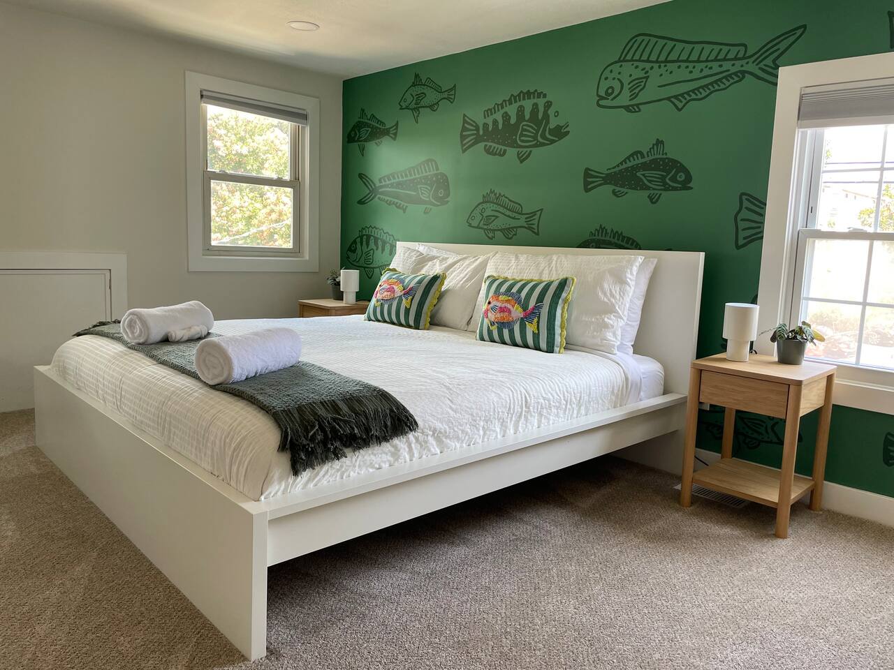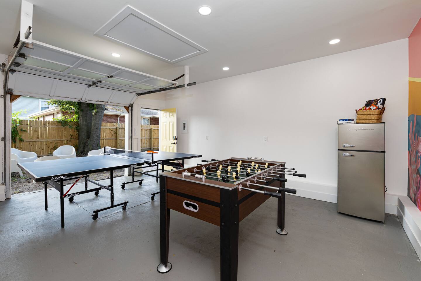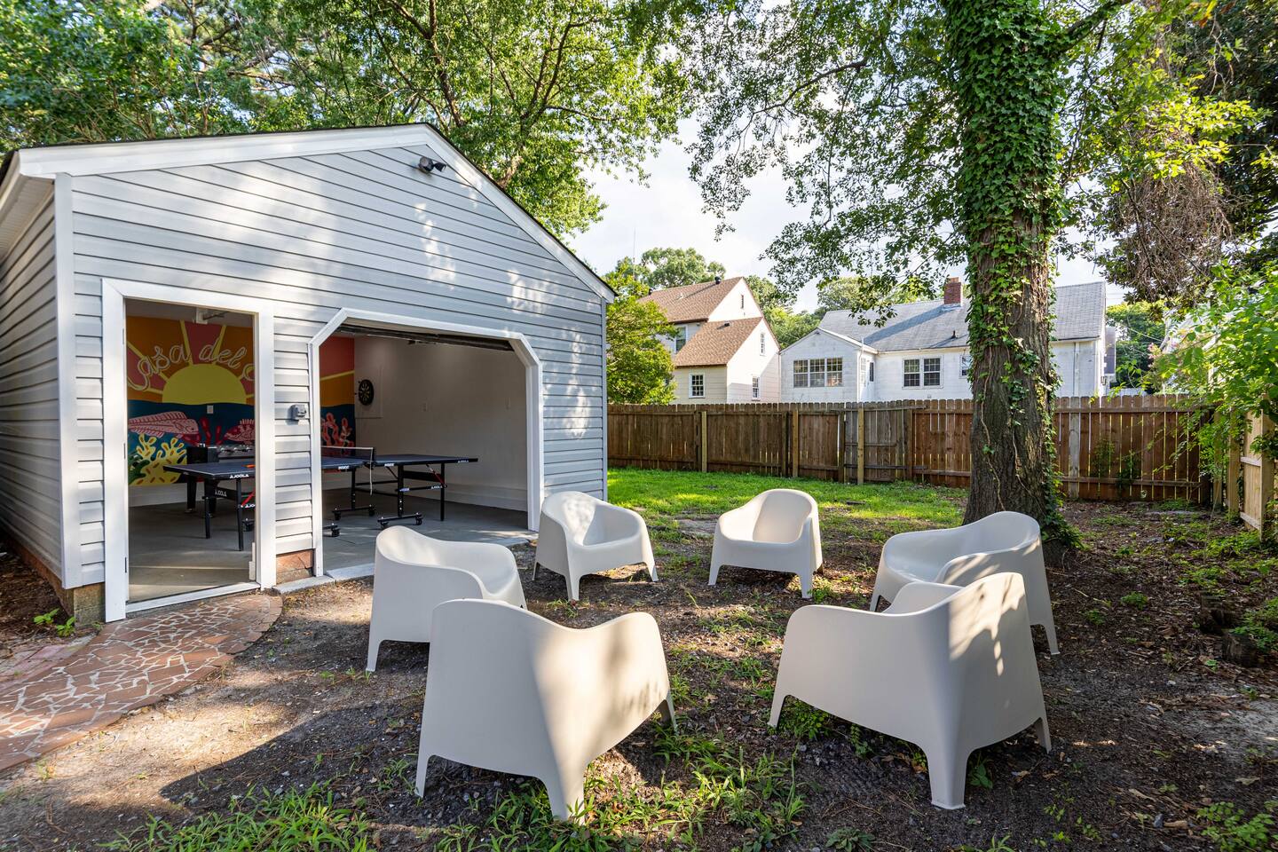 Recent renovations (Q1 2025): everything is new! Enjoy the spectacular murals with sea themes painted by local artists in the bedrooms and playroom Living Room - Large L-shaped couch - TV for entertainment - Board games - Open floor plan connecting to the dining area and kitchen - Creative coastal theme throughout Kitchen - Fully equipped with everything you need - Modern appliances - Spacious and functional - Plenty of storage space Interior Dining Area - Seating for eight Bedrooms Bedrooms feature unique murals painted by local artists. - 1st bedroom equipped with a comfortable queen-size bed - 2nd Bedroom equipped with 2 single-size beds - 3rd Bedroom (master bedroom) - Equipped with a King-size bed and a desktop. - inviting bedding for a restful night’s sleep - The Sofa Bed in the TV room can also be used, comfortable for 2 people. Bathroom - 2 Full bathrooms, one in the first floor and the master bathroom in the second floor Outdoor Area - BBQ grill for outdoor cooking - Fire pit - Corn hole game Playing room - Ping pong table - Refrigerator - Foosball table - Dart boards - TV TV room Other Areas - laundry room with washer/dryer combo - Guests are free to use all the space of the property!